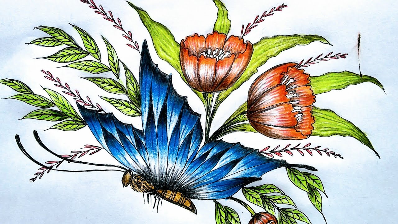 Pencil Work Pencil Drawings Of Flowers And Butterflies